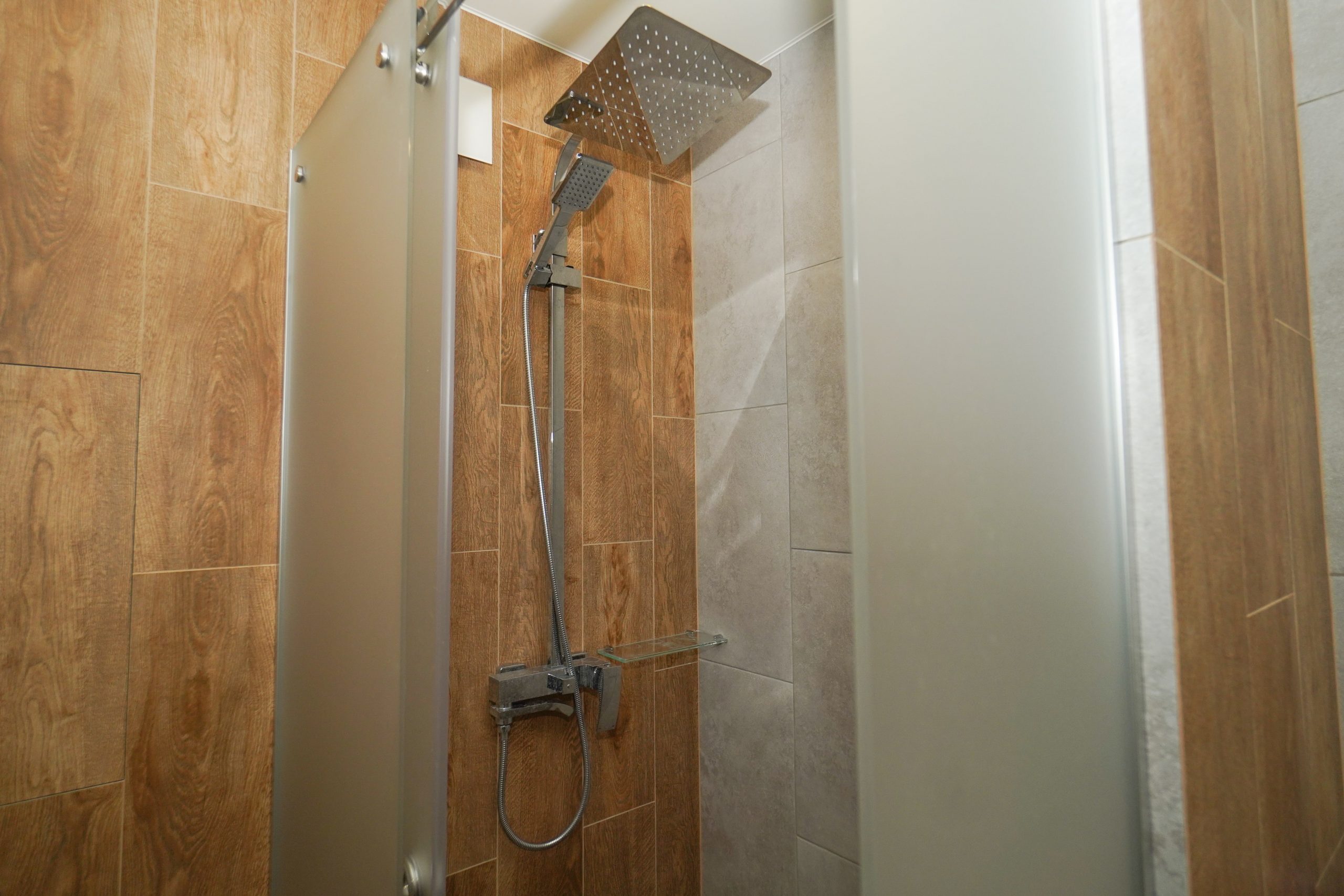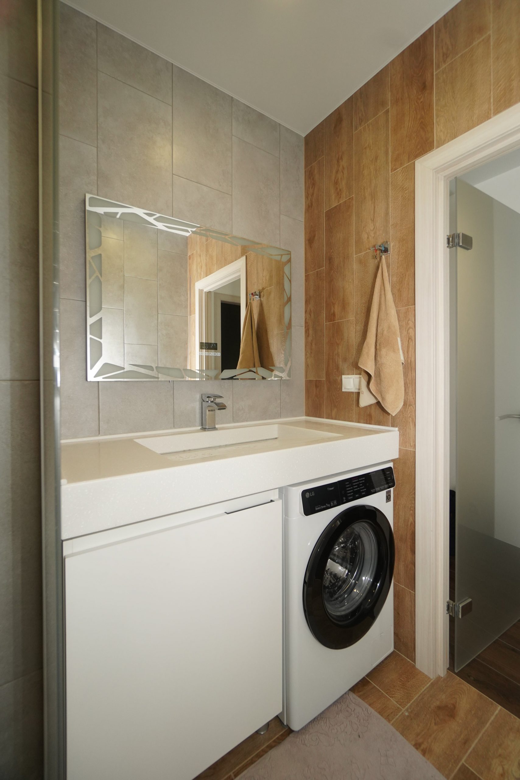 - На полу ламинат и керамогранит